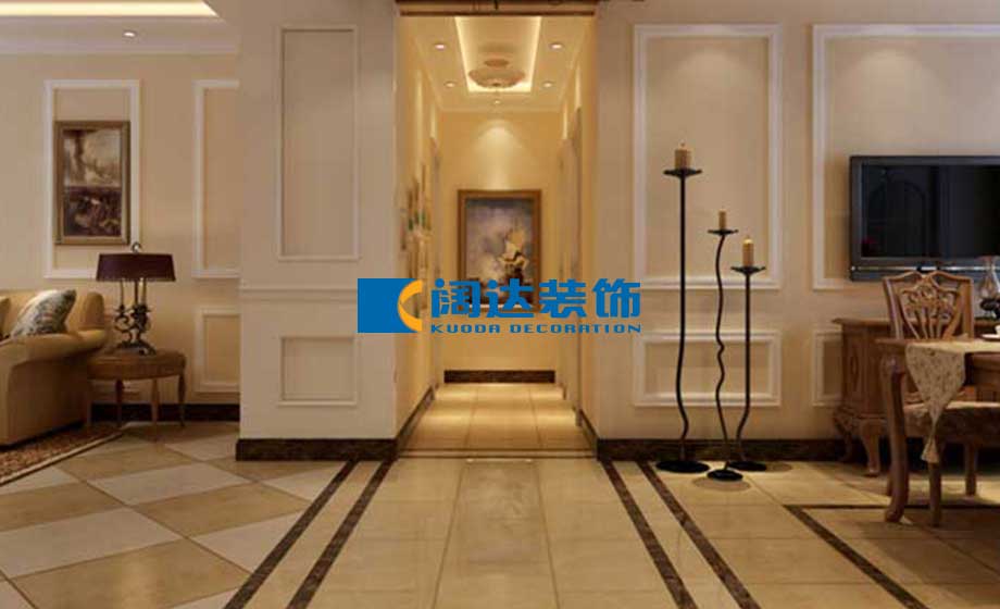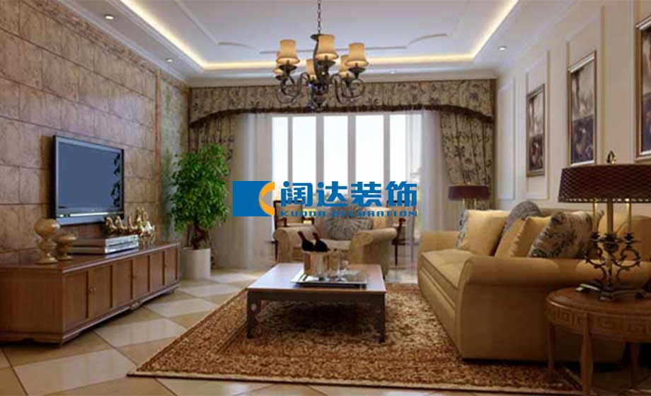 本案的風格為輕美式,裝修的特點是簡潔實用,色彩是明亮環保,是非常典型的“輕裝修、重裝飾”的風格。案例中的美式家具最迷人之處還在于造型、紋路、雕飾和色調細膩高貴。客廳:客廳的電視背景墻與沙發背景墻形成對比,不會顯得枯燥死板,顏色上輕重搭配,使整個空間更有層次感。