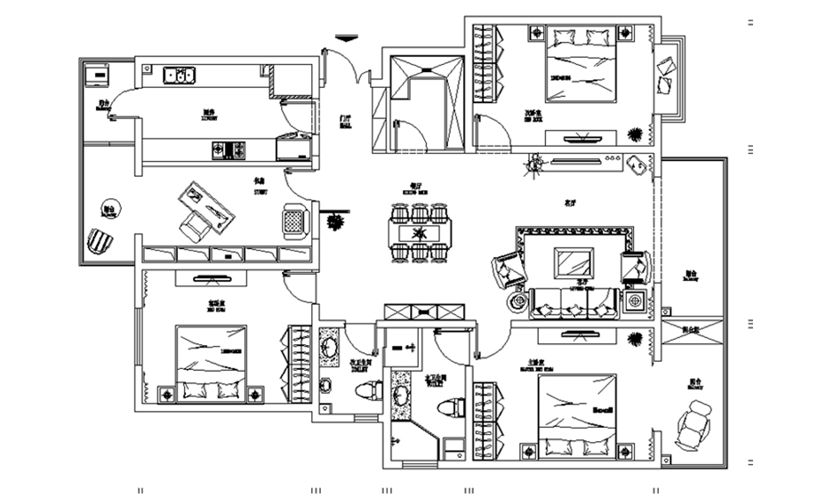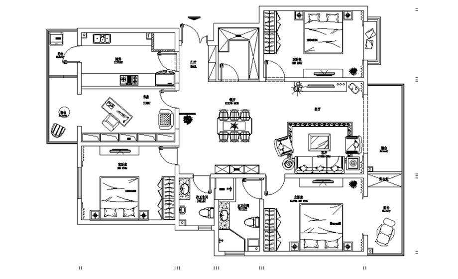 廚房:廚房空間較大,所以將櫥柜操作臺(tái)的空間設(shè)置的比較完善,將家用廚房電器修進(jìn)行了合理的規(guī)劃。