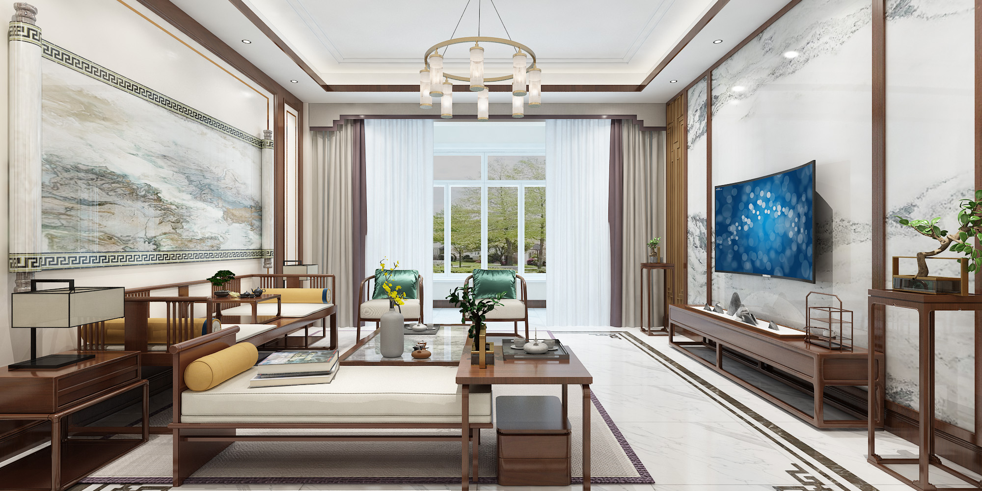 本案的別墅設計采用了新中式的裝飾風格,公共區域是以實木色調的家具和具有中國特色元素的裝飾來打造,有一種悠遠、寧靜的文化韻味。二三層私密空間主要是以現代輕奢的風格,簡約的線條結合色彩更為突出了整個空間的靈動性。