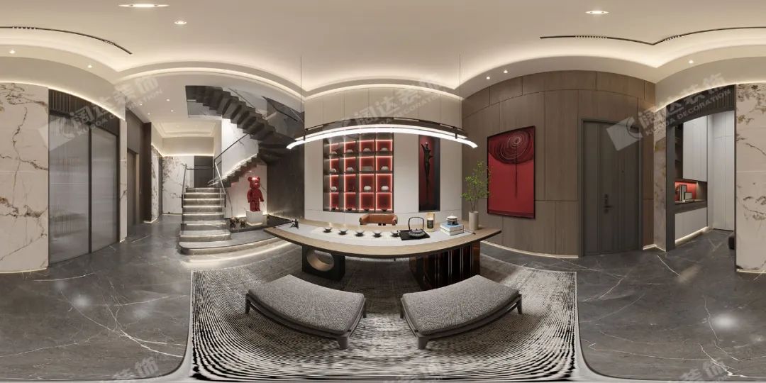 陳設(shè)細節(jié)以藝術(shù)化手法的渲染引出獨立自由的生活語境,成為一種獨屬于這個空間的節(jié)奏,并在材料間疏密有序的邏輯關(guān)系中,給人帶來一種充滿儀式感的生活,拓展著家的居住體驗,實現(xiàn)物質(zhì)與精神的雙重安放。