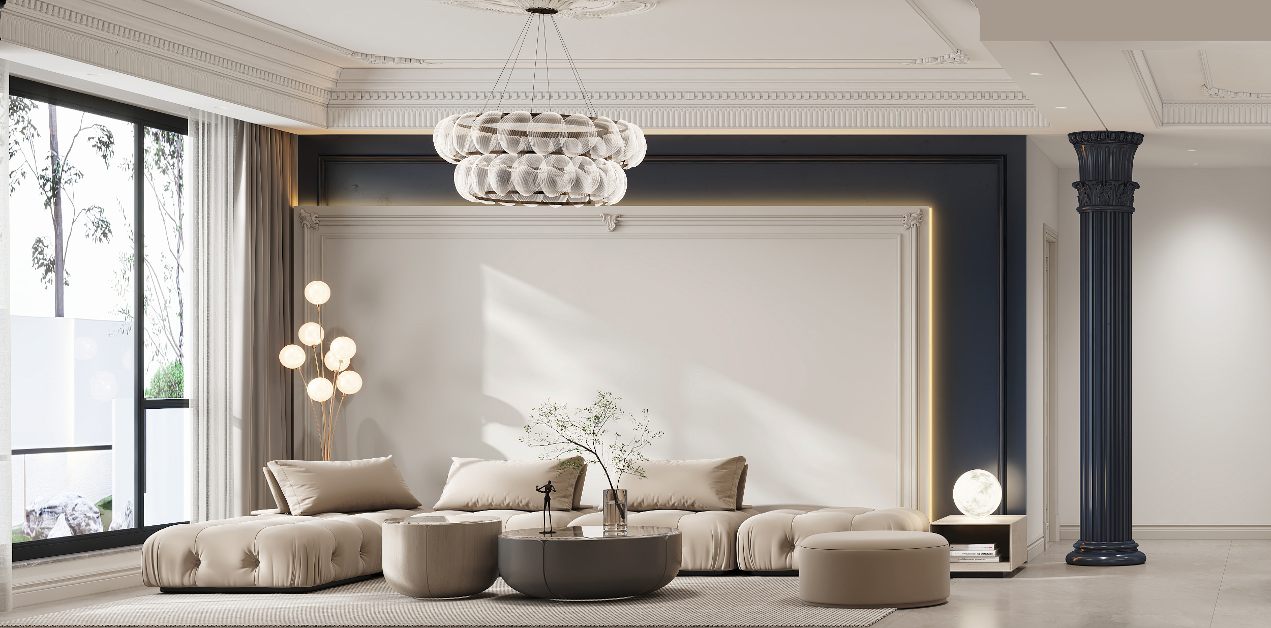 簡潔有品質(zhì)的現(xiàn)代茶幾、沙發(fā)融合法式設(shè)計的浪漫情懷,色彩層次與藝術(shù)韻律相互映襯,使家里的每個角落都美得柔和而高級。