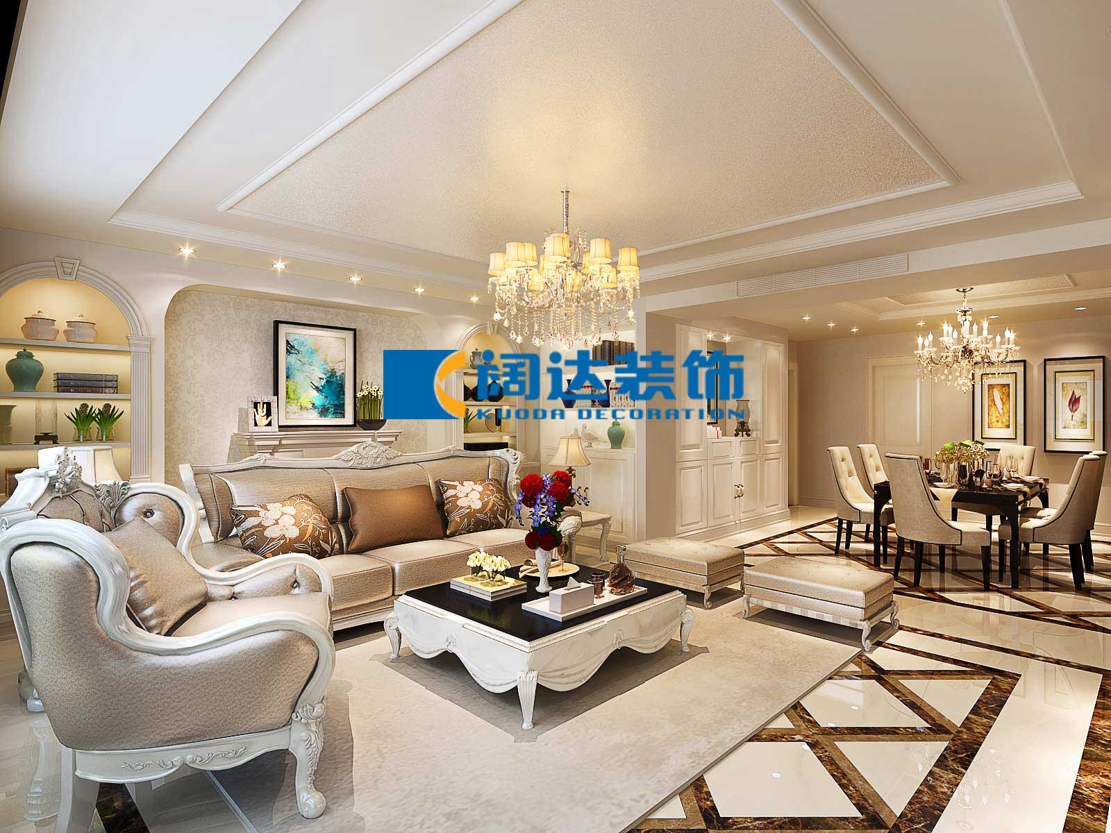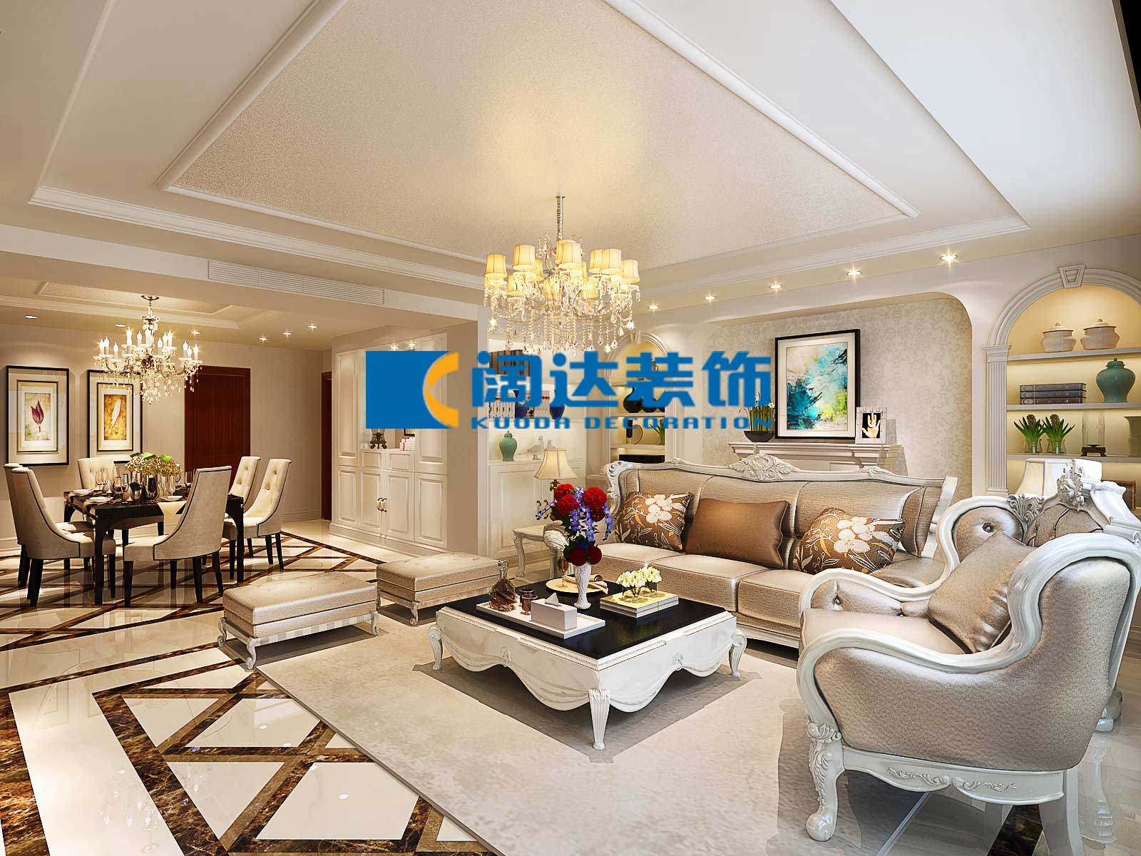 本案例采用歐式設(shè)計(jì)風(fēng)格,通過整體色彩及家具的搭配營造自然、舒適、高雅的生活氛圍,此設(shè)計(jì)案例也在相當(dāng)程度上表現(xiàn)出其居住者的品位、愛好和生活價(jià)值觀。