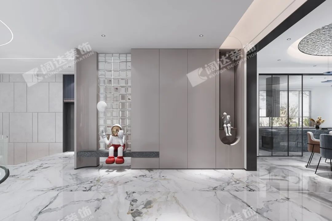 玄關 將大理石的光澤、木飾面的溫潤、玻璃的紋理交織在光影中,打造了簡潔、大氣、舒適的居家環境。