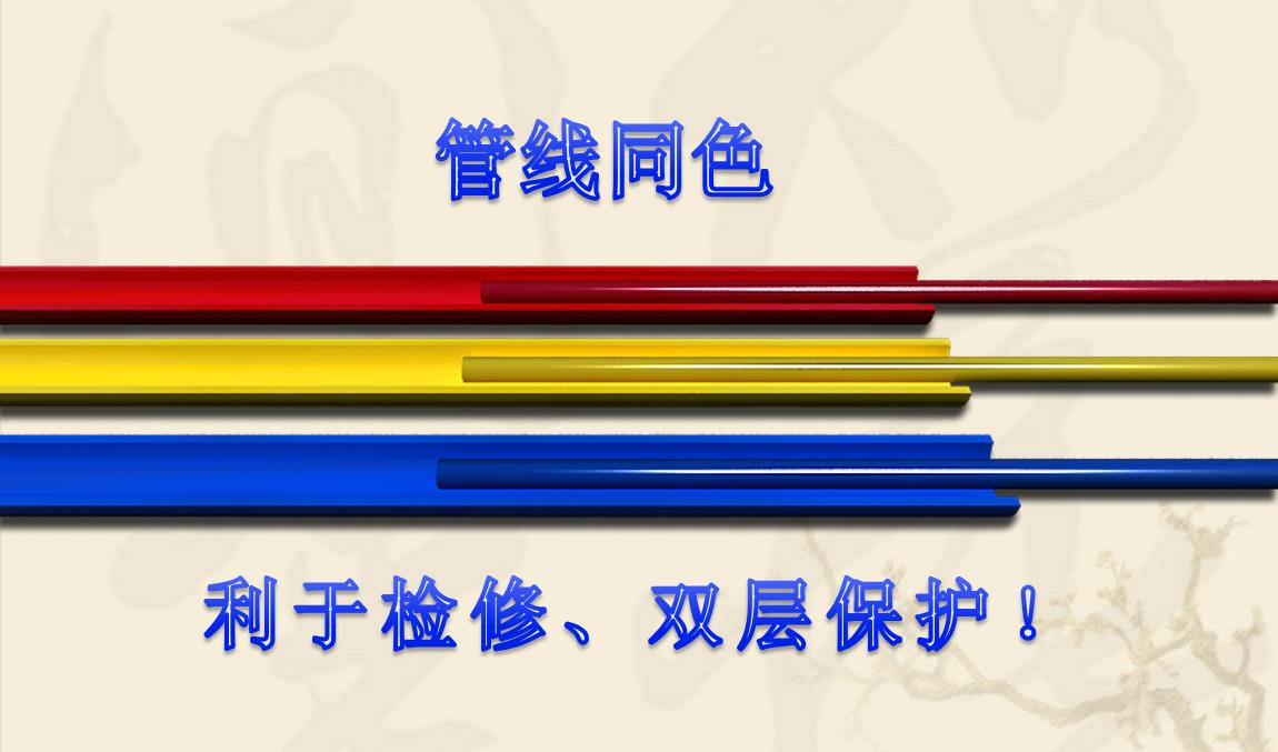 3. 線/管各分為四種顏色,對應相應電線,清楚區別火線、零線、地線、回路線,非專業人員也能識別并維修更換,實實在在保證施工與維修中不會發生接錯的現象,保證用電安全。