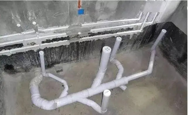 當然在布管的時候也要注意,盡量不破壞開發商原有的防水層,布管僅僅是搭一個簡單的框架。在我們做二次排水的時候,地面還要找平,還要再做防水層以防萬一。