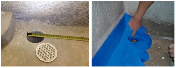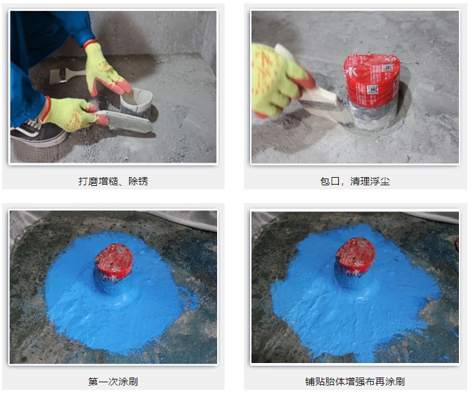 ②各下水管道根部與樓板搭接處,要在第一次涂刷防水涂料后鋪貼胎體增強布,而后才可以進行二次涂刷。此時,需要特別注意,在涂刷前,管道(PVC/鐵管)要打磨增糙/除銹。若管根與樓板搭接處有松動及裂縫,需開槽密封后,方可按照上述工序進行施工。